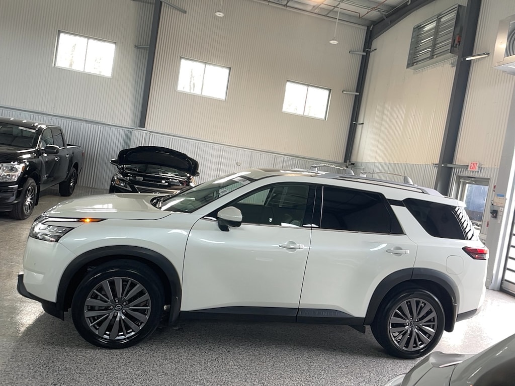 Bumper to bumper warranty up to 100k available. Ask for more details on extended warranty packages, Clean AutoCheck history., Still Under Factory Warranty, One owner vehicle., 4WD, 20" Painted Alloy Wheels, 2nd-Row Captain Chairs, 2nd-Row Removable Center Console, 3rd row seats: bench, 4-Wheel Disc Brakes, 6 Speakers, ABS brakes, Active Cruise Control, Air Conditioning, AM/FM radio: SiriusXM, Auto High-beam Headlights, Auto-dimming Rear-View mirror, Automatic temperature control, Black Splash Guards (Set of 4), Bose Premium Audio System, Brake assist, Captain's Chairs Carpeted Floor Mats (Set of 4), Cross Bars, Delay-off headlights, Dual front impact airbags, Dual front side impact airbags, Electronic Stability Control, Emergency communication system: NissanConnect Services, Exterior Parking Camera Rear, Four wheel independent suspension, Front anti-roll bar, Front Center Armrest, Front dual zone A/C, Front reading lights, Fully automatic headlights, Garage door transmitter: HomeLink, Heated door mirrors, Heated Front Bucket Seats, Heated Rear Seats, Heated steering wheel, Illuminated entry, Knee airbag, Leather Seating Surfaces, Leather steering wheel, LED Fog Lamps, Low tire pressure warning, Navigation system: NissanConnect Navigation, NissanConnect w/Navigation & Services, Occupant sensing airbag, Outside temperature display, Overhead airbag, Overhead console, Panic alarm, Panoramic Moonroof, Power door mirrors, Power driver seat, Power Liftgate, Power passenger seat, Power steering, Power windows, Premium Paint - Pearl White Tricoat, Radio data system, Radio: AM/FM Audio System, Rear air conditioning, Rear anti-roll bar, Rear reading lights, Rear seat center armrest, Rear side impact airbag, Rear window defroster, Rear window wiper, Reclining 3rd row seat, Remote keyless entry, Security system, SL Premium Package, Speed control, Speed-sensing steering, Split folding rear seat, Spoiler, Steering wheel mounted audio controls, Tachometer, Telescoping steering wheel, Tilt steering wheel, Tow Hitch Receiver & Harness, Traction control, Trip computer, Turn signal indicator mirrors, Variably intermittent wipers.